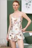 Комплект Mia-Amore состоит из топа и шорт, выполнен из принтованного смесового шёлка. Шорты по низу отделаны игривыми воланчиками.