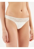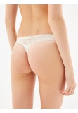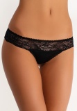 Трусики - стринги с заниженной линией талии. По верху изделия широкая полоса из эластичного, мягкого кружева. По низу трусиков на передней и задней деталях микрофибра. Срезы изделия обработаны мягкой резинкой с ажурными фестонами. Внутренняя деталь ластовицы выполнена из 100% хлопка.